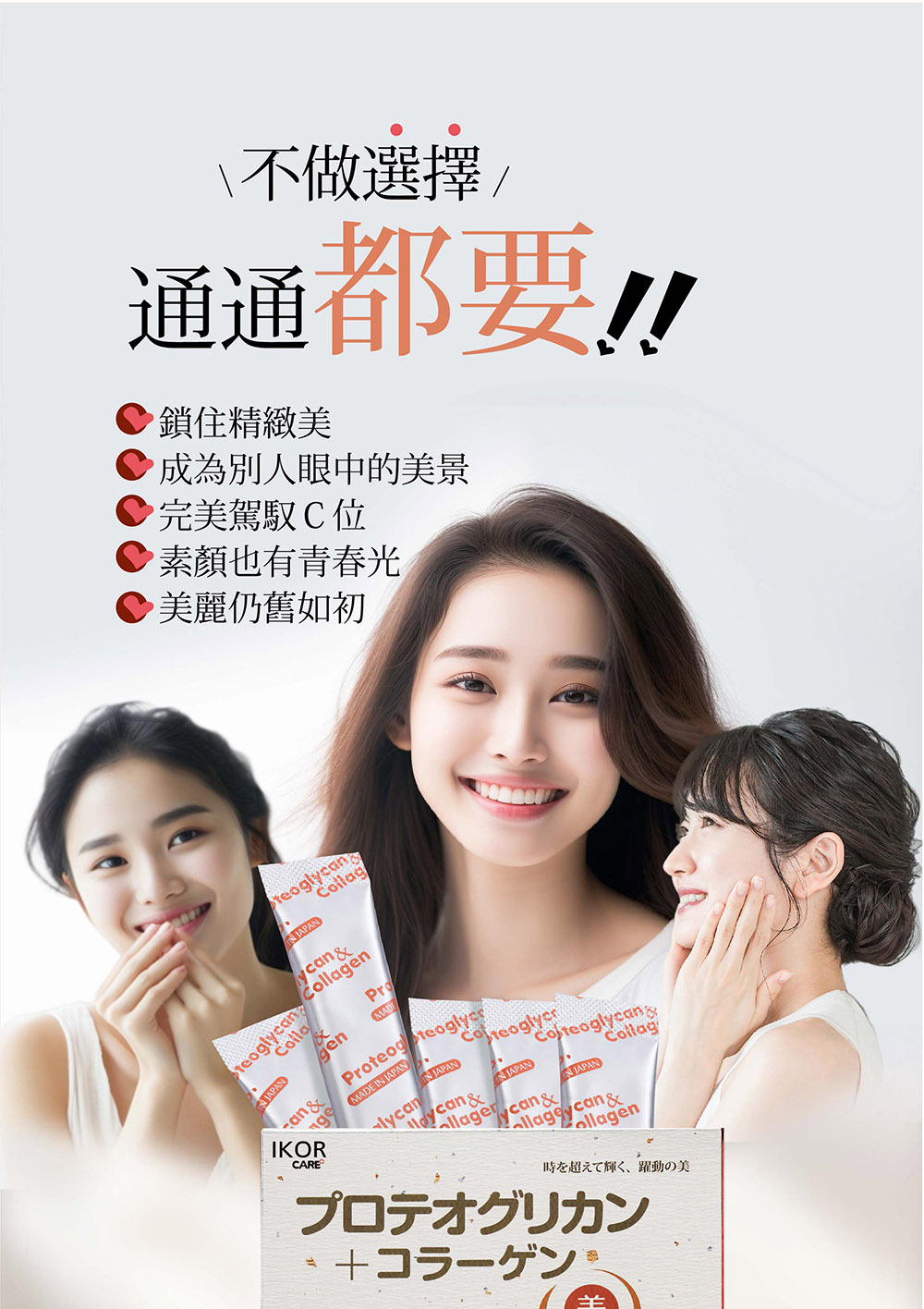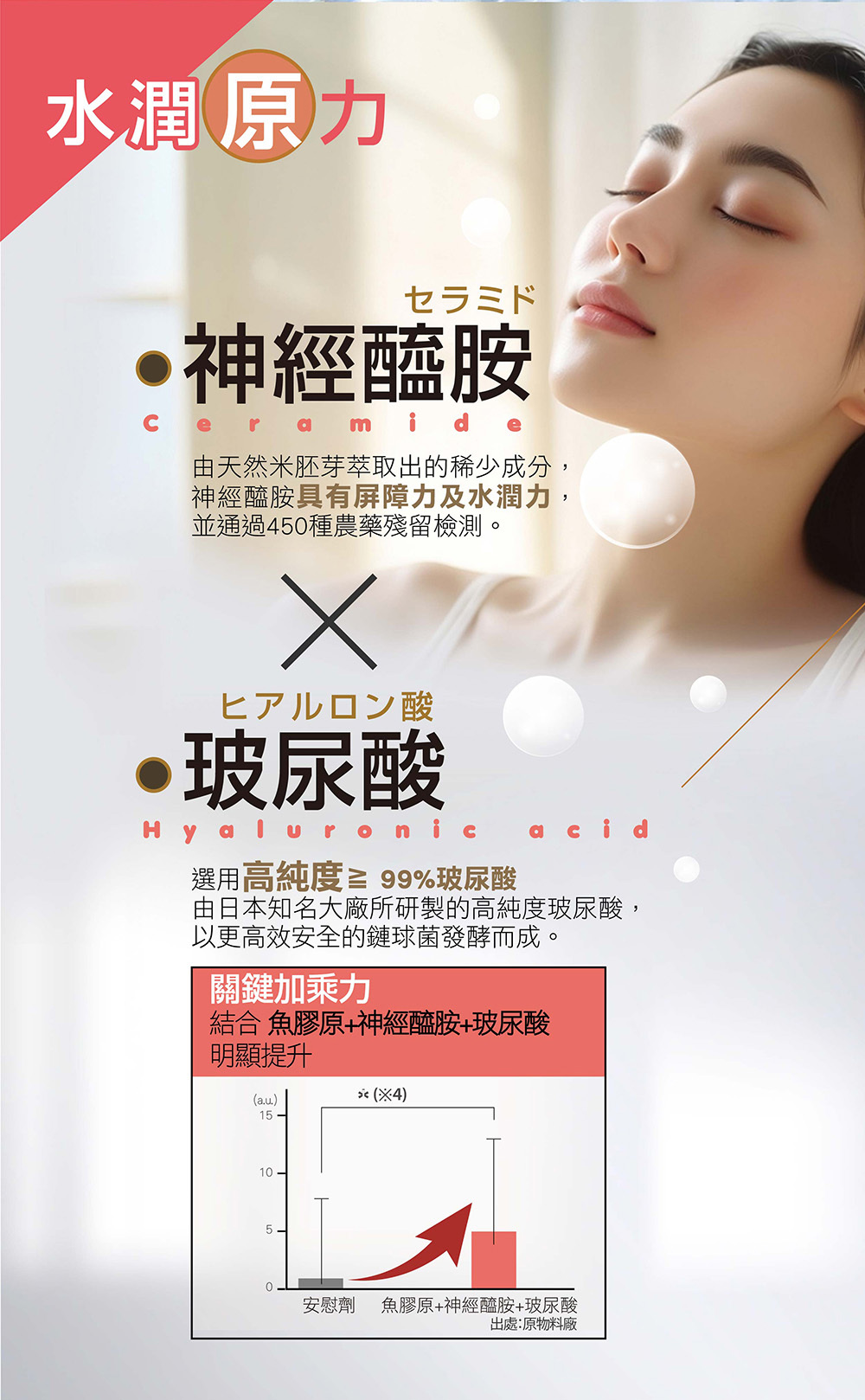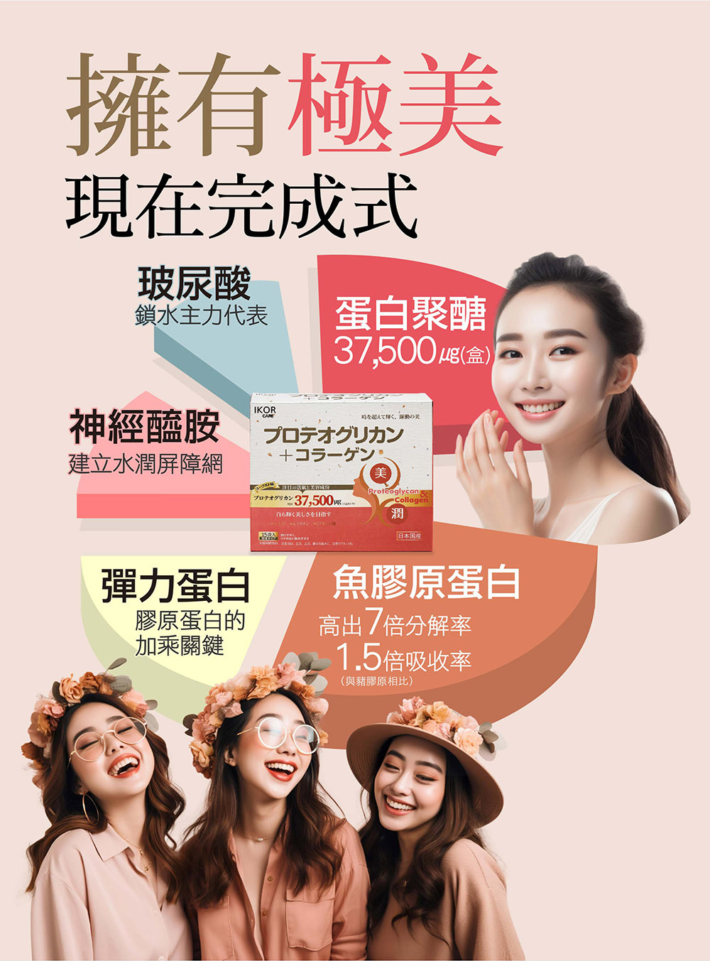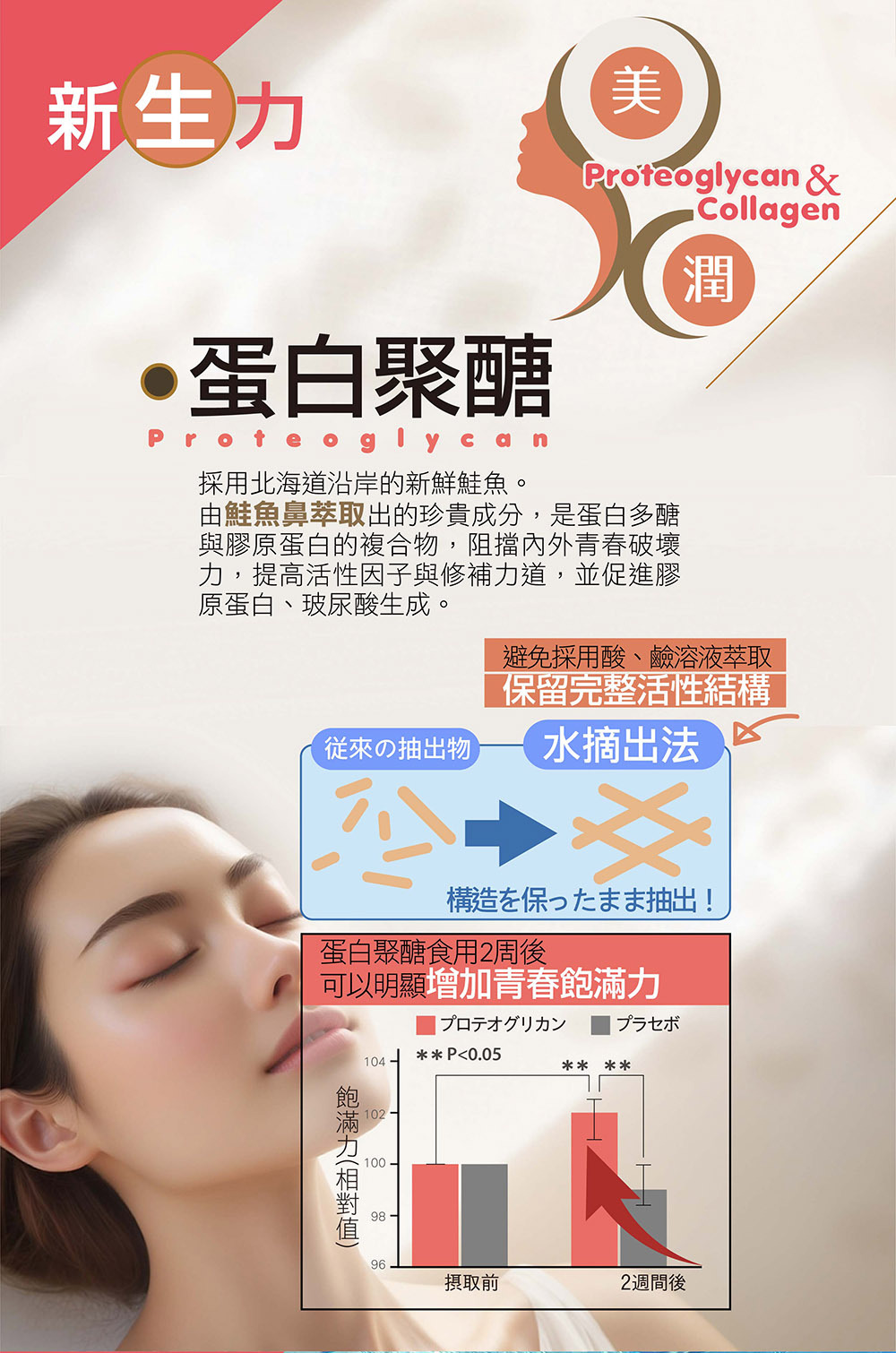 魚膠原蛋白胜肽 × 蛋白聚醣 × 神經醯胺,從結構基礎到潤澤感一次整合,不是補得更多,而是補得更完整。